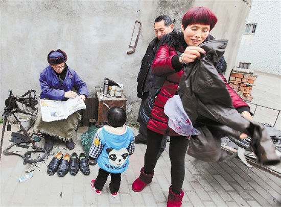 街坊对老人的手艺十分满意。