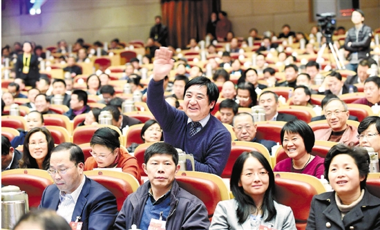 1月22日,省政协十一届三次会议第三次全体会议在省人民大会堂举行,会场上委员们积极发言。 本报记者 胡元勇 摄