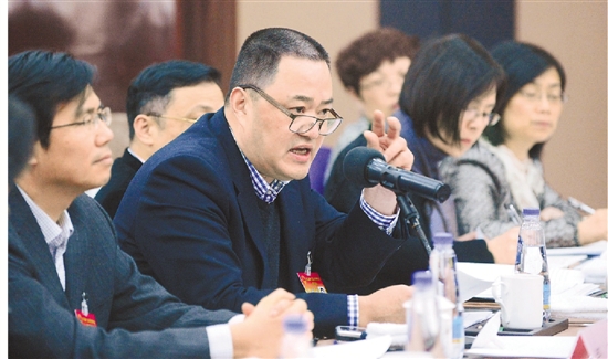 省人大代表周国建建议政府加大对实体经济的支持,帮助企业转型发展。 黄曙林 梁臻 摄