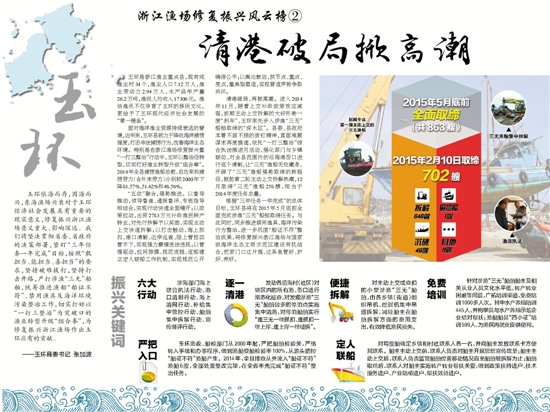 清港破局,再掀高潮。进入2014年11月,随着上交补助政策效应减弱,前期主动上交拆解的大好形势一度“刹车”,玉环率先步入涉渔“三无”船舶取缔的“深水区”。县委、县政府本着不屈不挠的拔钉精神,直面难题谋求再度提速,依托“一打三整治”综合执法推进月活动,强化部门与乡镇联动,对全县范围内的沿海港岙口进行逐个清剿,让“三无”渔船无处藏身,开辟了“三无”渔船强势取缔的新路径,掀起第二轮主动上交拆解热潮,12月取缔“三无”渔船258艘,相当于2014年度任务总量。