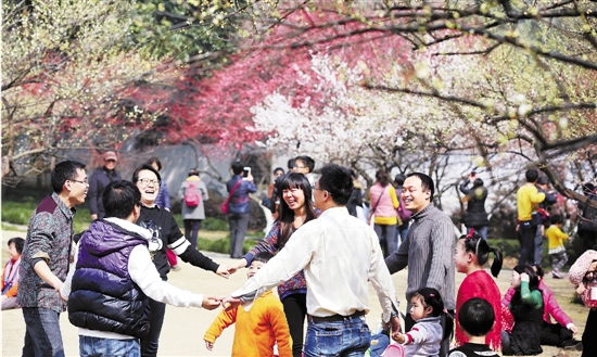 2月14日,在杭州植物园灵峰探梅景区,梅花竞相绽放,市民和游客徜徉花海,好不惬意。 本报记者 魏志阳 王颖 摄