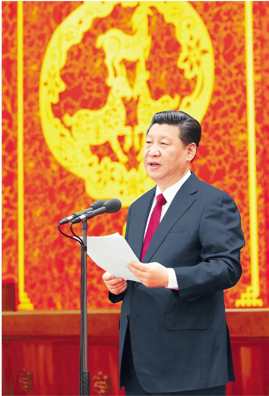 2月17日,中共中央、国务院在北京人民大会堂举行2015年春节团拜会。中共中央总书记、国家主席、中央军委主席习近平发表重要讲话。