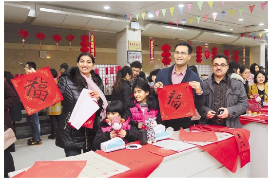 | 大年三十,浙江大学有800多位师生留校过年。下午3时,紫金港校区食堂人声鼎沸,红彤彤的灯谜、红彤彤的对联映红了同学们的笑脸,大家拿起毛笔,为新的一年亲手写上一个“福”字。在“新年活动专区”,同学们写福、送福、猜灯谜,在热闹的民俗活动中感受浓浓年味。 卢绍庆 周炜 曾福泉 摄 |