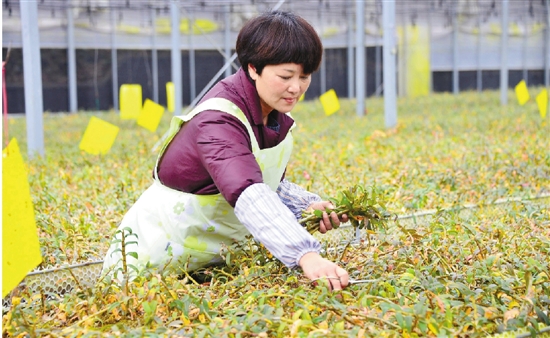 虞伟丽在采摘铁皮石斛鲜条。 朱映归 摄