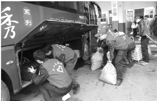 江山交通、供电系统及网络自主报名的团员青年开展“温暖回家路”助力春运。 毛建华 叶恒衡 姜雨希 摄