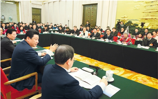 3月6日,中共中央总书记、国家主席、中央军委主席习近平参加十二届全国人大三次会议江西代表团的审议。