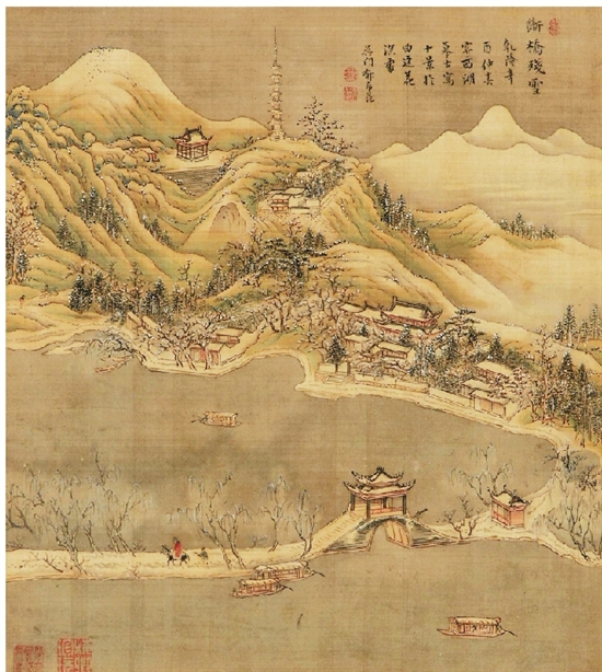 清 郁希范 《西湖胜景图册》之“断桥残雪”、“宝石凤亭”