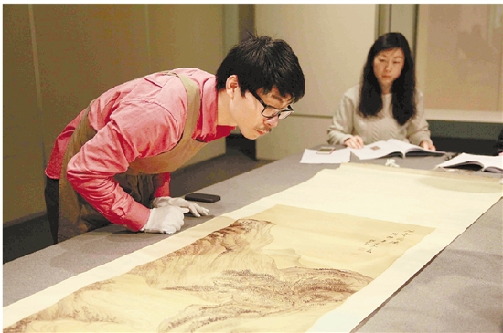 浙江美术馆工作人员开箱验画。