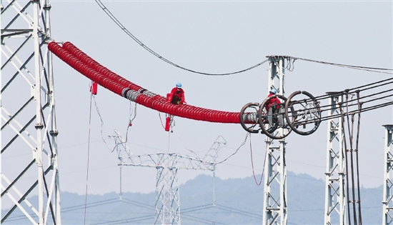 近日,国网浙江省电力公司员工正对我省首条特高压直流工程——“±800千伏宾金直流工程”浙江段线路进行检修。 该工程是目前世界上电压等级最高、输送容量最大的直流输电工程,额定输送功率800万千瓦,将金沙江下游溪洛渡左岸水电站的电力送至浙江,约占浙江电力供应的七分之一,是浙江经济的大动脉。 吴仁坚 王平 张帆 摄 |
