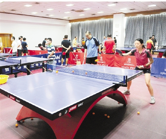 钟爱乒乓球运动的市民,积极参与健身。 潘良干 摄