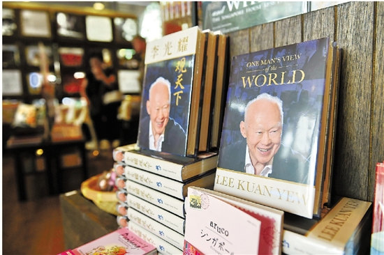 3月20日,新加坡前总理李光耀的著作摆放在新加坡的一家书店内。 新华社发