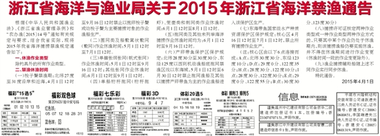 浙江省海洋与渔业局关于2015年浙江省海洋禁渔通告