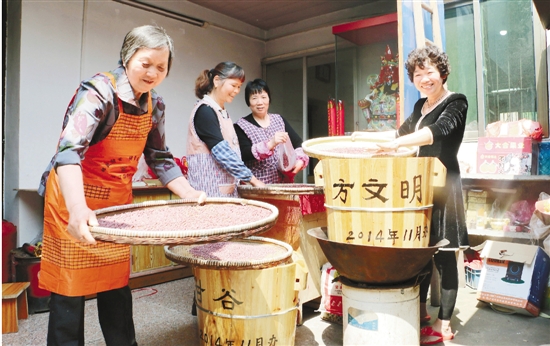 清明节前夕,浦江月泉社区的好姐妹们,在忙碌筛选做通天饭的豆和米。 张丹丹 朱舒蔚 摄