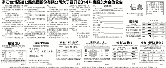 浙江台州高速公路集团股份有限公司关于召开2014年度股东大会的公告