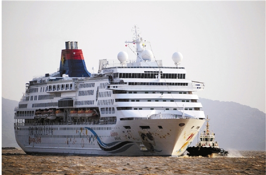 2014年10月,舟山群岛国际邮轮港开港。图为从台湾驶来的“宝瓶星”号邮轮靠港。(资料照片)