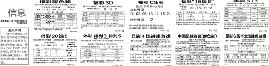 任选9场:全国总投注额:14124152元 浙江省投注额:1125320元