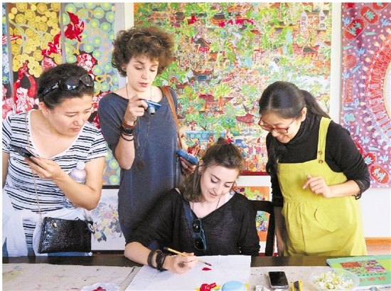 日前,华东师范大学孔子学院的16名留学生,在衢州市柯城区沟溪乡余东村看农民画家作画,体验中国乡村文化。 吴铁鸣 摄