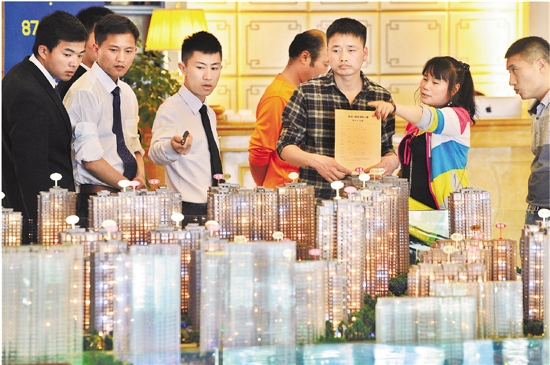 楼市新政3月30日出台后,杭州楼市交易回暖。图为余杭区康城一品楼盘,买房者在看房。 本报记者 吴元峰 摄