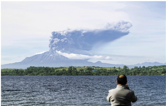 4月30日,在智利的巴拉斯港,一名男子观察正在喷发的卡尔布科火山。继22日突然喷发后,卡尔布科火山30日再次喷发。 新华社发(大卫·科特摄)