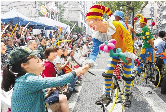 5月1日,动漫节动漫彩车巡游在杭州市中山北路创意街区举行。5辆大彩车和700人左右的表演阵容,给群众带来欢乐。