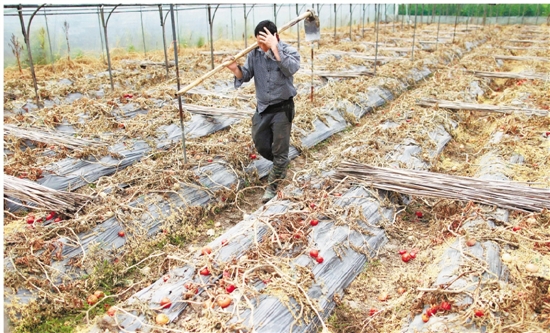 种植户许福千今年种植5亩番茄,目前他只能翻掉部分番茄改种黄瓜。