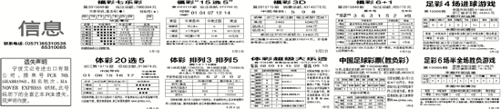 更多信息查询:浙江体育彩票网 www.zjlottery.com。