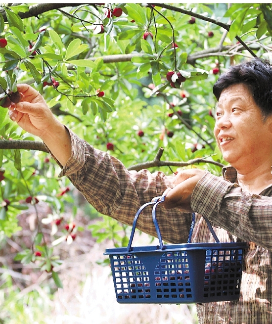 ▲6月12日,在余姚市凤山街道梁湖头穴湖村,梅农在采杨梅。余姚杨梅栽培面积近10万亩。 吴大庆 摄