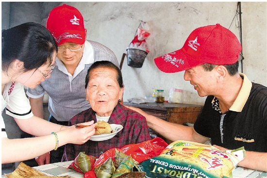 6月12日上午,普陀区沈家门街道小干岛上的社区干部和村干部,组织岛上妇女包粽子,送给全岛60周岁以上的250多名老人。 记者 谢国平 通讯员 翁盈昌 摄