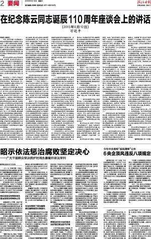 中共中央举行纪念陈云诞辰110周年座谈会