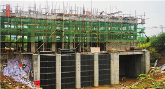 图为6月15日,临安经济开发区汪家埠排涝泵站工地,建设者正在进行工程扫尾施工。 张伟星 摄