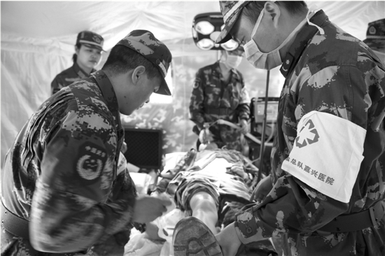 针对夏季入汛、洪涝灾害频发及卫勤保障任务重的特点,连日来,武警浙江总队嘉兴医院将卫勤保障分队拉到陌生地域演练,探索和完善遂行多样化卫勤保障的方法和预案。 通讯员 金鹏 摄