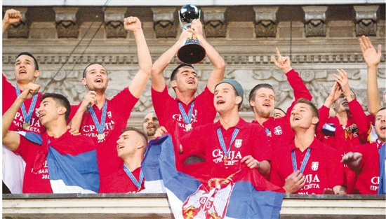 6月22日,在新西兰举行的国际足联20岁以下(U20)世界杯上战胜巴西队夺冠的塞尔维亚队凯旋回国,约5万球迷为球队举行了盛大的庆祝仪式。 新华社发