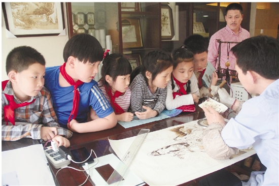 近日,杭州长江实验小学一年级的同学们来到杭州工艺美术博物馆,学习风筝制作、烙画技法以及杭绣针法等具有杭州人文地域韵味的工艺美术。 徐杨娟 李依娜 摄