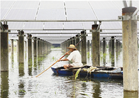 6月30日,桐乡市河山镇,我省首座“渔光互补”光伏电站并网投产。该光伏电站项目装机容量11.5兆瓦,占地16万平方米,利用240亩鱼塘水面建光伏电站。据悉,水面上4万多块光伏板发电6年便可收回成本,而该鱼塘与普通鱼塘养殖效益相差无几。 记者 沈志成 陈培华 通讯员 张潘丽 冷丽华 摄 |