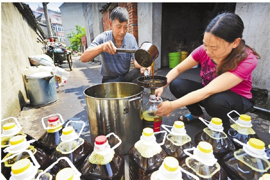 分装刚刚加工出来的菜油。