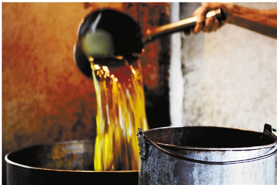 经过高温蒸滤后的菜籽油更加晶莹剔透。