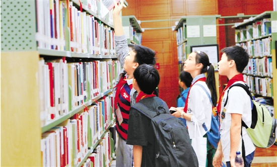7月7日,杭州图书馆,不少中小学生选择来这里过暑假,找一本感兴趣的图书,增加阅读量。 吴秋缘 摄