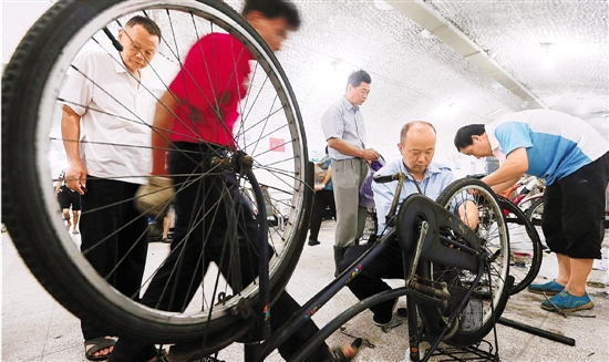 日前,杭州“雷锋广场”志愿者在四牌楼防空洞避暑点开展服务。 记者 林云龙 摄