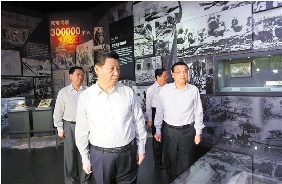 7月7日,党和国家领导人习近平、李克强、张德江、俞正声、刘云山、王岐山、张高丽等在中国人民抗日战争纪念馆,参观纪念中国人民抗日战争暨世界反法西斯战争胜利70周年主题展览《伟大胜利 历史贡献》。 新华社记者 兰红光 摄