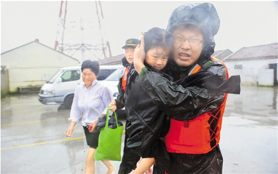 7月11日,受强台风“灿鸿”影响,在宁波市北仑区梅山水道施工的第一项目部,有200余名群众被安置在梅山学校避灾安置点。 索向鲁 金旭孟 沈琼云 摄