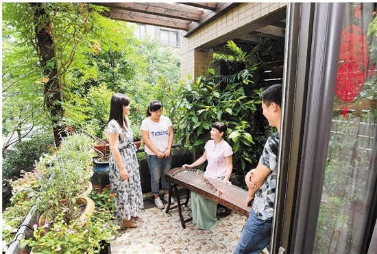 德清县武康镇连续两年评选十佳最美阳台。图为十佳最美阳台得主——鲁建萍的家,她喜欢每天闲时看看花草,并在阳台上弹上一曲古筝。