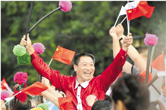 7月31日,在北京市延庆县望京广场,当地居民庆祝北京携手张家口获得2022年冬奥会举办权。