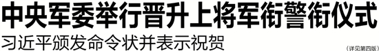 中央军委举行晋升上将军衔警衔仪式