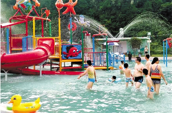游客在水世界里嬉水纳凉。 包敦远 摄
