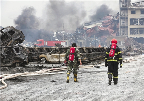 8月14日下午,消防队员奔向灭火地点。 新华社记者 金立旺 摄