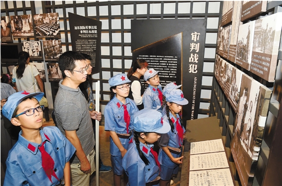 8月15日,是日本宣布无条件投降70周年纪念日,许多杭州市民带着孩子来到富阳受降镇观看抗战展览,牢记中国军民浴血抗战历史。 本报记者 吴元峰 摄