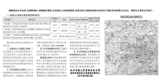 杭州市余杭区国有建设用地使用权挂牌出让公告