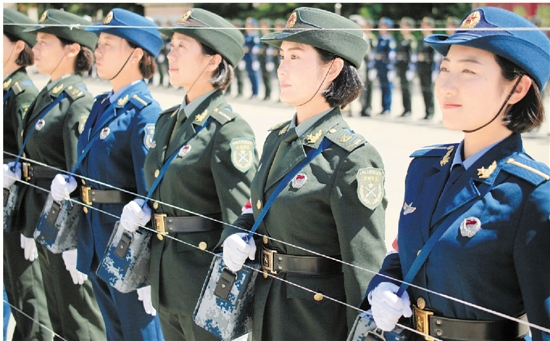 受阅的白求恩国际医疗方队队员在阅兵村进行训练(8月4日摄)。 新华社发