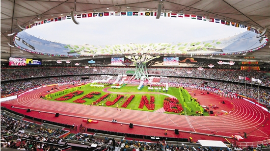 8月22日,北京国际田联世界田径锦标赛开幕式进行了文艺演出。 本报记者 潘良干 摄