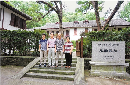 陈禾(右一)等人在恩泽医院院史馆前留影。 陈耿 摄
